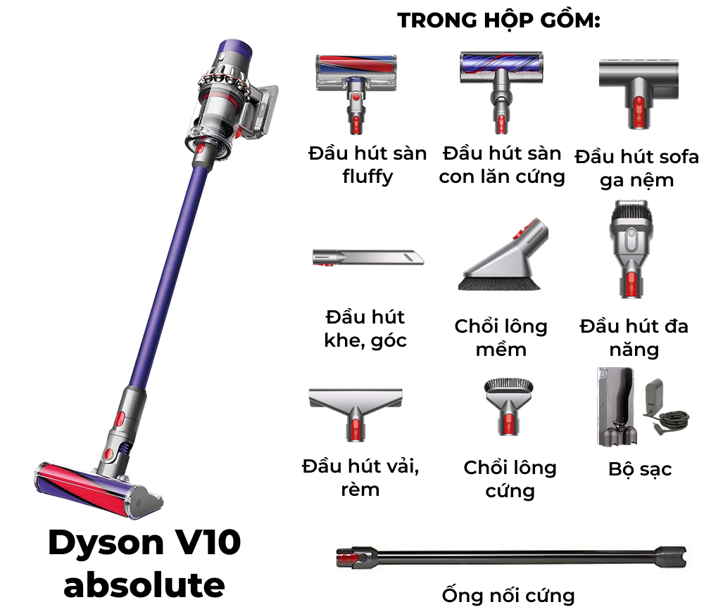 Phụ kiện trong gói hàng – Dyson V10 Absolute