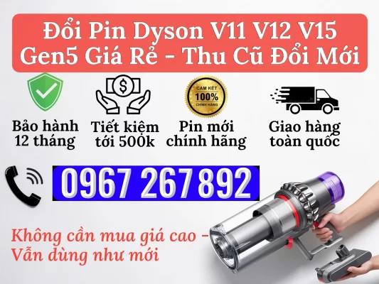 Đổi Pin Dyson V11 V12 V15 Gen5 Giá Rẻ – Thu Pin Cũ Đổi Pin Mới, Bảo Hành 12 Tháng